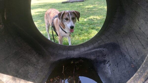 Jutta und Renate waren mit Rosalie auf dem Hundeplatz, als ich die drei entdeckte und mit Winnetou zu ihnen ging. Die beiden Hunde begrüßten sich freundlich und gingen gemeinsam im Bach baden. Dann ging ich wieder heim und Rosalie drehte noch ein paar Runden über den Platz mit Jutta und Renate, die auch eine Leckerliesuche für sie auslegten. 🙂