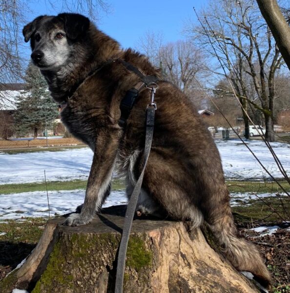 Mit Lucky und Balto waren Em und Elfriede im Kurpark. Mittlerweile war schönster Sonnenschein und so genossen alle vier den Ausflug sehr. Balto war heute etwas langsamer und zurückhaltender unterwegs, aber bei der Leckerliesuche war er genauso eifrig dabei wie Lucky. 🙂