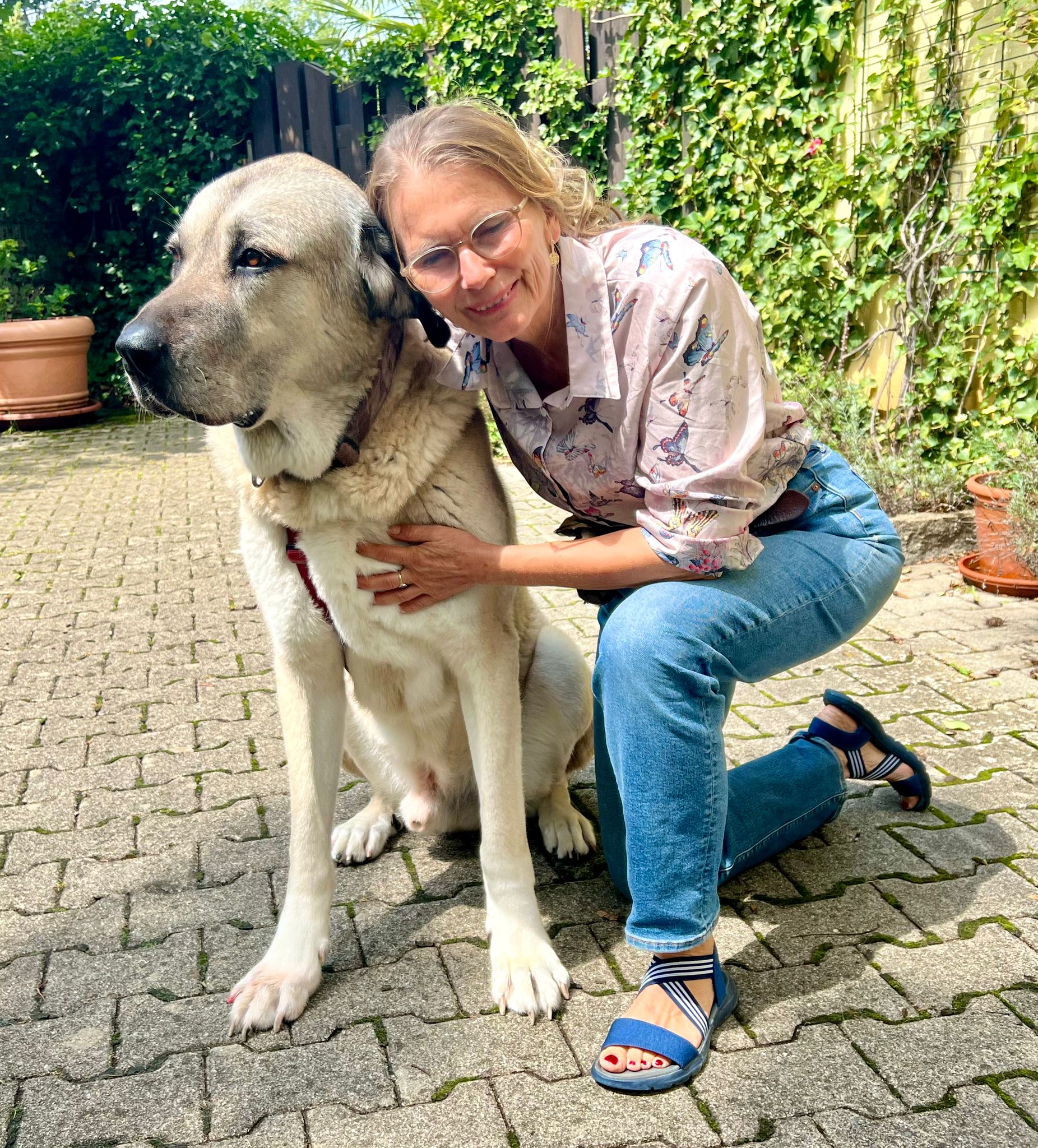 Anna Maria kam um die Mittagszeit herum mit Juri zu mir in den Innenhof. Wir kuschelten, übten ein paar Tricks und Juri sammelte Leckerchen ein, die ich für ihn versteckt hatte. 🙂