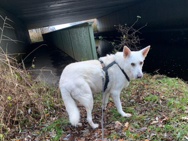 Em ging mit Josh zu den Weihern an der Raststätte und von dort weiter bis zur Bank hinter dem Rastplatz, denn Josh wollte unbedingt weiter laufen und sich die kleine Unterführung anschauen. An der Raststätte vorbei schaute er in aller Ruhe den vielen Menschen zu, er schnupperte ein wenig am Zaun und freute sich bei den Weihern über eine Leckerliesuche und ausgiebige Streicheleinheiten. 🙂