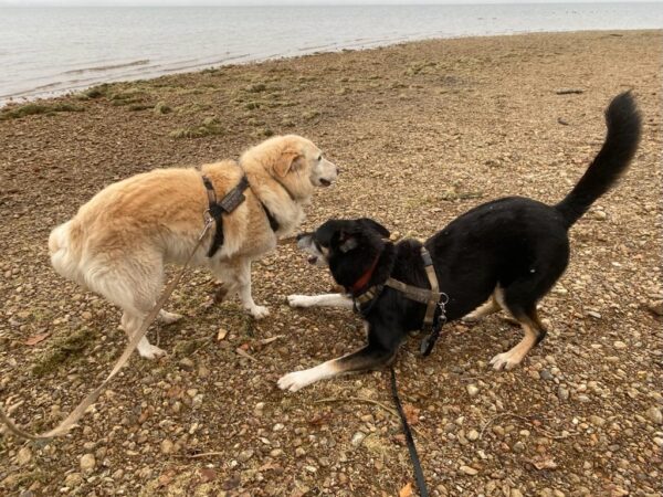 Latjak und Valentina machten einen tollen Ausflug mit Jutta und Matthias. Sie waren in Übersee lange am Chiemsee unterwegs, an dem trotz des Schmuddelwetters viele Leute unterwegs waren. Für Latjak und Valentina war das überhaupt kein Problem, sie liefen super brav mit Jutta und Matthias am Strand entlang, schnupperten, scharrten und buddelten im Sand und Latjak wälzte sich auch immer wieder lachend. Kuschel- und Leckerliepausen gab es auch und alle vier genossen die gemeinsame Zeit sehr. 🙂