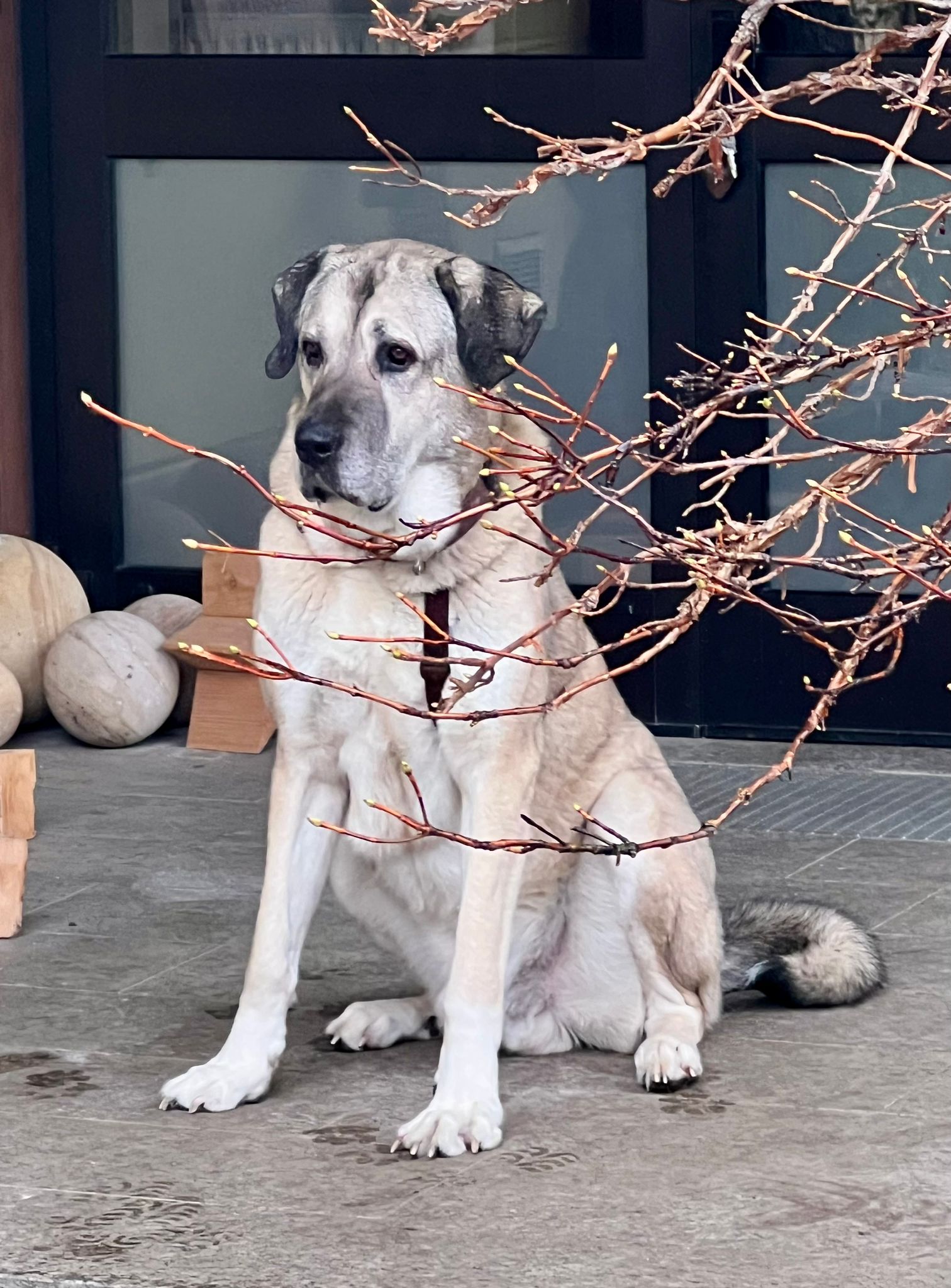 Anna Maria kam mit Juri zu mir in den Innenhof. Zuerst sammelte Juri frischen Fisch ein, den ich an verschiedenen Stellen für ihn ausgelegt hatte, dann übten wir ein paar Kommados, die er alle perfekt ausführte. Als es immer stärker regnete, gingen wir in meinen Besprechungsraum und kuschelten dort noch eine Runde, bevor Anna Maria ihn zurück ins TierHeim fuhr. 🙂
