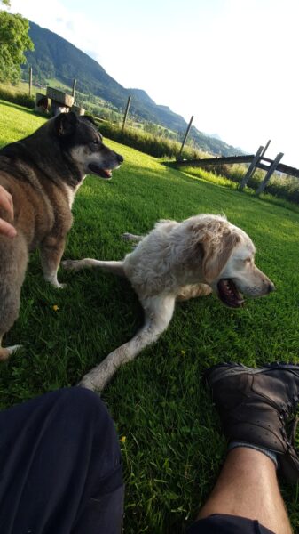 Mit Momo und Aika fuhr Julian zum Hundeplatz. Die beiden waren relativ entspannt, einmal verbellten die beiden ein Pferd, ließen sich aber gleich von Julian abrufen. 🙂