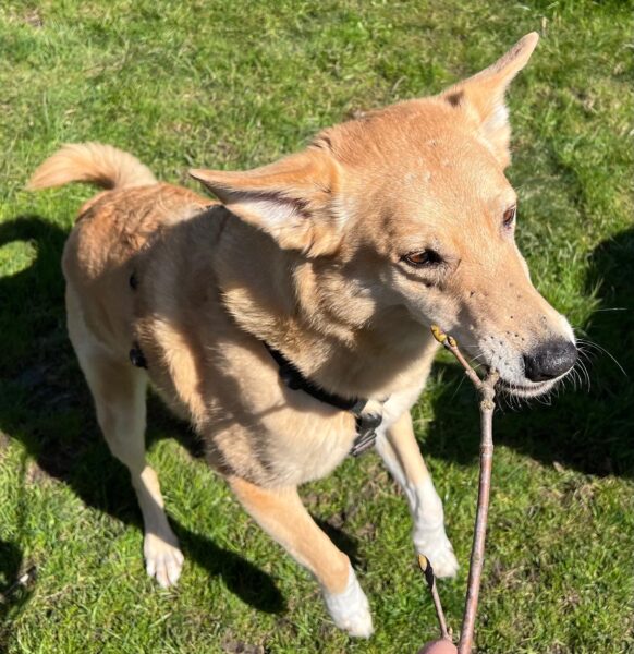 Sam war mit Sonja in Richtung Bernau unterwegs. Anfangs war er noch etwas nervös, denn er hatte das Auto des Tierarztes gesehen, das ihm nicht ganz geheuer war, aber Sonja schaffte es, ihn gut zu beruhigen. Zwar zog er zu Beginn noch ein wenig an der Leine, aber wie so oft wurde er im Laufe des Spaziergangs immer entspannter. Die Leckerchen, die Sonja für ihn versteckte, suchte er voller Freude und Kuschelpausen fand er auch klasse. 🙂