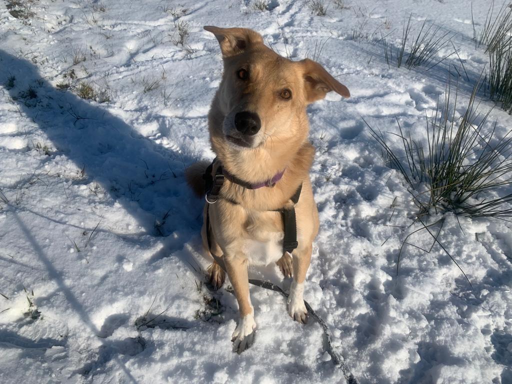Robert war mit Latjak und Valentina auf der Wiese schräg gegenüber vom TierHeim. Die beiden waren sehr fröhlich, tollten durch den Schnee und schnüffelten kreuz und quer über die Wiese. 🙂