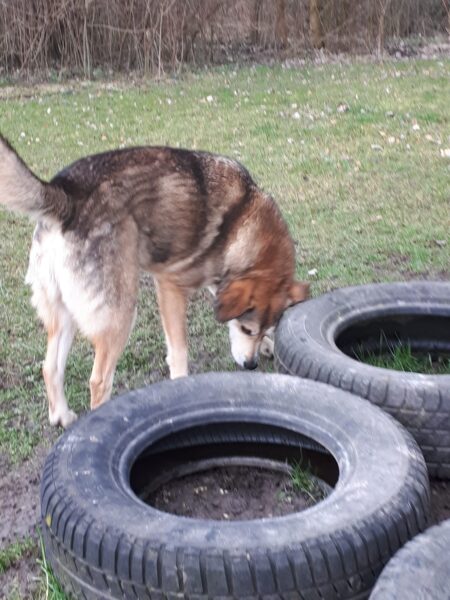 Lukas brachte Aslan über den Hof zum TierHeimauto. Als der Chris daneben stehen sah, rannte er freudestrahlend zu ihm und begrüßte ihn fröhlich, dann sprang er schnell ins Auto und sie konnten zum Hundeplatz fahren. Wie gewohnt schnüffelte Aslan dort seine Runde am Zaun entlang und kontaktete freundlich mit vorbeikommenden Hunden. Er suchte begeistert die Leckerlies, die Chris für ihn ausgelegt hatte und ließ sich auch gerne streicheln. 🙂