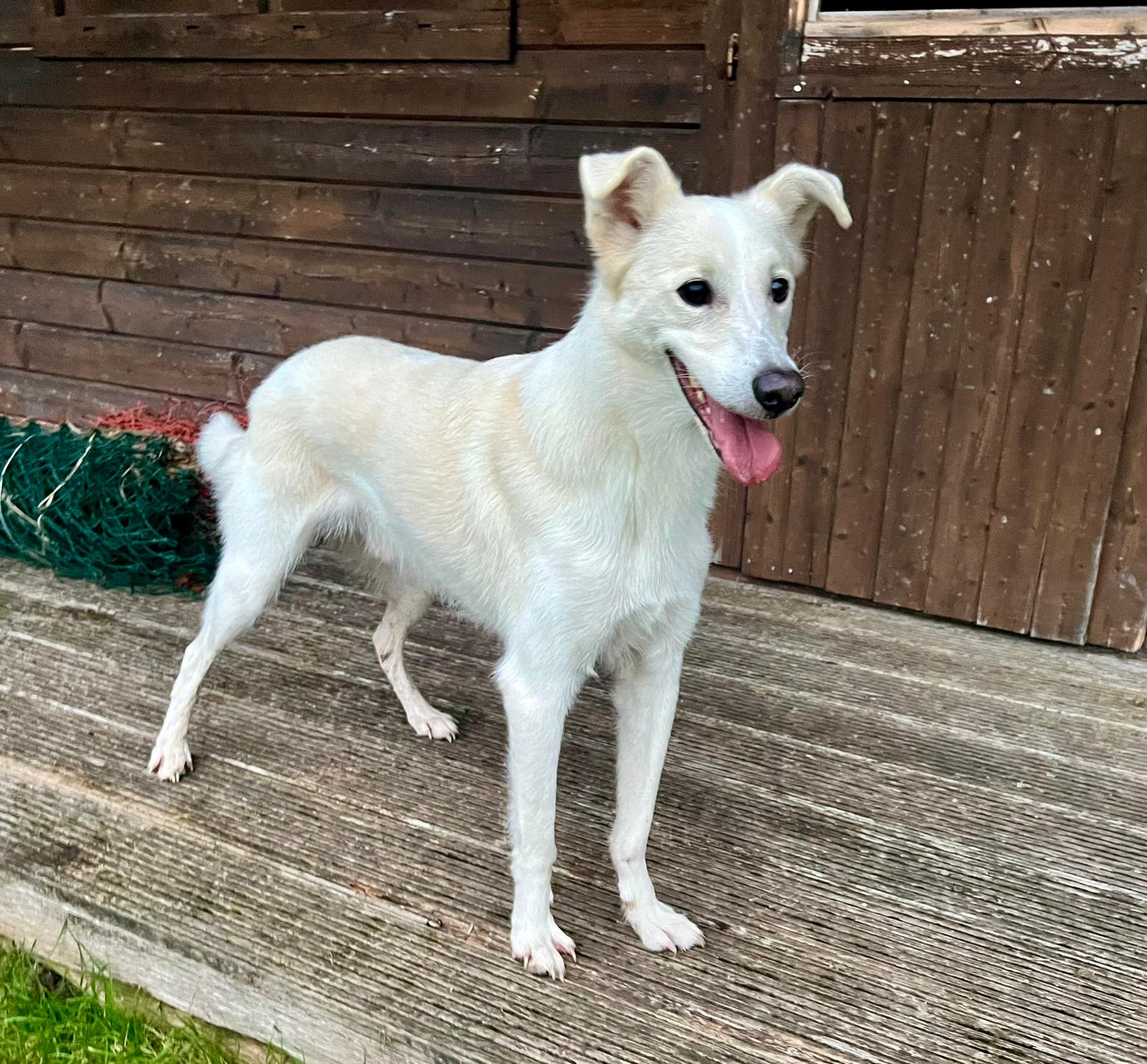 Mit Santana fuhr Anna Maria danach zum Hundeplatz. Dort rannte sich Santana erst einmal so richtig aus und sauste wie ein weißer Wirbelwind über die Fläche. Er ließ sich auch aus großer Entfernung prima von Anna Maria abrufen und hatte dann viel Freude dabei, mit ihr über die verschiedenen Geräte zu turnen – wofür es natürlich auch Leckerlies gab. Mit einem Radfahrer rannte er ohne zu bellen am Zaun entlang und flitzte dann lachend zu Anna Maria zurück, die noch eine Weile mit ihm kuschelte, bevor sie sich mit ihm auf den Rückweg machte. 🙂