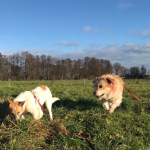 Danach gingen Jutta und Renate noch eine große Runde mit Bella und Armani. Bella hatte eine Maus entdeckt, die gerade aus ihrem Loch heraus schaute. So schnell konnte Jutta gar nicht schauen, wie Bella sie fing und im Maul hatte. Gefressen hat sie sie aber nicht. Armani schaute dem Ganzen neugierig zu, blieb aber vöölig ruhig. 🙂