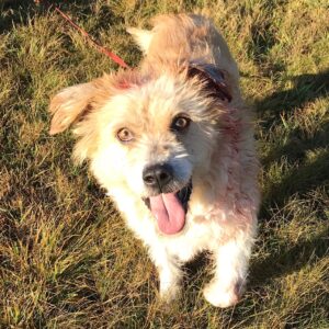 Georgie freute sich riesig, als er das Auto von Jutta und Renate vorfahren sah. Die beiden gingen gleich mit ihm los. Er blieb trotz Begegnung mit einem Auto und einem Radfahrer sehr entspannt und genoss den Spaziergang in vollen Zügen. 🙂