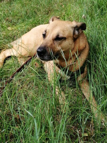 Evi fuhr mit Rosalie auf den Hundeplatz, wo es für Rosalie echt heiß war. Sie schnüffelte ein wenig herum, aber lag am liebsten in der Wiese und genoss es, einfach in die Gegend zu schauen. 🙂