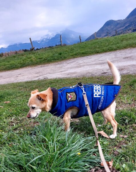 Auch Kaya durfte schon in der Früh spazieren gehen. Alex lief mit ihr in Richtung Übersee, wobei Kaya gleich den Weg auf die große Wiese einschlug. Am Wieseneingang schnüffelte sie neugierig den Spuren von Elke, Rosalie und Diego nach, dann setzte sie sich und schaute Alex erwartungsvoll an, aber nachdem sie sich von ihr keine Leckerlies erbetteln konnte, stand sie auf und lief munter schnuppernd am Waldrand entlang. Gemütlich umrundeten sie die Wiese und als sie in der vorderen Ecke waren, kam ihnen Michi mit Bobby, Hope, Anni und Lucy entgegen. Kaya blieb ruhig und entspannt und schaute den fünfen einfach nur nach. Nachdem sie im hinteren Bereich waren, machten Alex und Kaya sich auf den Rückweg. 🙂 Am späten Nachmittag freute sich Kaya über einen weiteren Spaziergang mit Mane. 🙂
