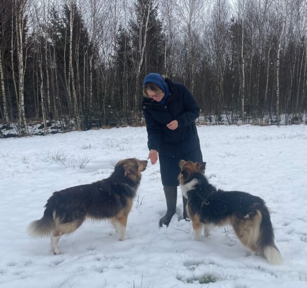 Mit Momo und Aika war Michi abends auf der großen Wiese. Momo und Aika folgten aufgeregt einer Rehspur, ließen sich aber gut beruhigen. Als in größerer Entfernung 3 Rehe in den Wald sprangen, wollten sie natürlich unbedingt dorthin, aber Michi schlug mit ihnen den Weg in die andere Richtung ein, um die Rehe nicht zu stören. So gingen sie noch eine Runde über die Wiese gegenüber vom TierHeim, wo Momo und Aika neugierig ihre Nasen in den Schnee steckten. 🙂