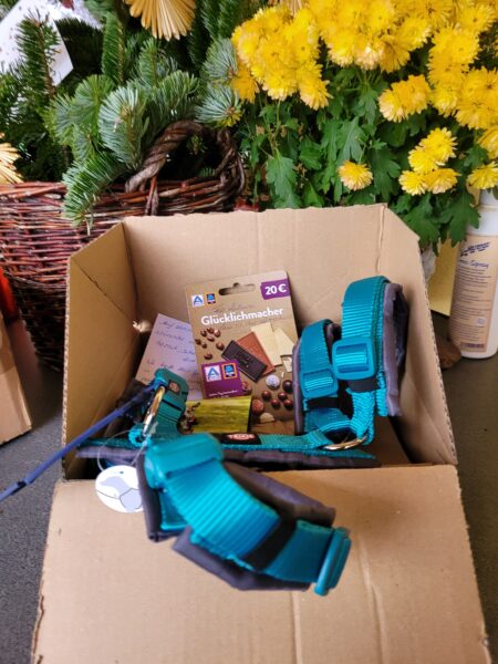 Heute kamen wieder ganz viele tolle Wichtelpakete für unsere Hunde an, eines liebevoller und schöner verpackt als das andere, ganz vielen lieben Dank an die Wichtel! 🙂 Balto bekam ein Geschirr, ein Intelligenzspiel, einen Freßnapfgutschein und leckere Knabbereien. Für Suri und Diego gab es viele Leckereien, einen Freßnapf- und einen Aldi-Gutschein. Laluna freute sich über feine Leckerlies, ein neues Geschirr und einen Freßnapfgutschein. Flora bekam schöne Leckerlies, Futter und einen Aldi-Gutschein. Für Monty gab es gleich zwei Beschäftigungsspiele, einen Lebkuchenmann aus Gummi, einen Freßnapfgutschein und feine Leckerlies. Da er heute ausgezogen ist, geben wir die Sachen an andere Hunde weiter.