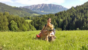Eddie`s Interessentin holte ihn zu einer Bergtour ab. Sie waren hinter Aschau am Spitzsteinhaus. Auf dem Weg begneteten sie einem freilaufenden Hund, den Eddie wohl nicht sonderlich sympathisch fand und ihn gleich wegknurrte. Später stellte sich ihnen auch noch eine Kuh in den Weg, die partout nicht weichen wollte und Eddie fixierte. Ihm war das ziemlich unheimlich, er rührte sich keinen Millimeter mehr und beschwichtigte stark. Zufällig vorbeikommende Wanderer konnten die Kuh ablenken und so konnte die Tour weiter gehen. 🙂