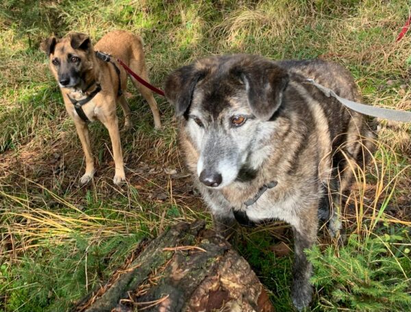 Rosalie und Diego freuten sich sehr, als Elke am Morgen mit ihnen zum Spaziergang aufbrach. Die beiden konnten es kaum erwarten, bis es endlich los ging und bellten schon aufgeregt im Auslauf, als Elke vorfuhr. Auf der Wiese schnüffelten sie neugierig herum, sausten durch das nasse Gras und ließen sich gern von Elke streicheln. 🙂
