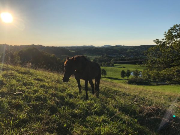 Abends war Steffi mit im Stall und machte Sternchen, Wallace und Gowinda nochmal die Hufe sauber und striegelte alle drei. Als der Mond hinter der Weide durch die Bäume durchleuchtete, beobachteten Wallace und Gowinda ihn mit gespitzten Ohren und als er über die Bäume hoch stieg, ging Gowinda entspannt in den Stall, während Wallace auf dem Paddock blieb und ihn weiter aufmerksam beobachtete. 🙂
