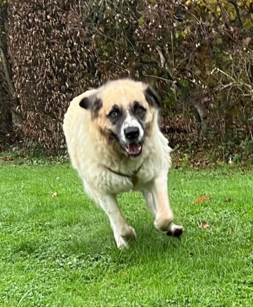 Anschließend fuhr Em mit Aslan in den Garten, der wie ausgewechselt war. Er hatte so großen Spaß, dass er nur noch auf und ab lief. Dabei machte er Luftsprünge vor Freude und war ganz aufgedreht – sooo schön. Am tollsten fand er es, sich vor Em in der Hecke zu verstecken. Wenn sie ihn dort suchte, lachte er richtig und wollte erst gar nicht herauskommen. So schöne, fröhliche Momente. 🙂