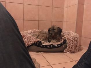 Watson ist am Abend angekommen. Der freundliche Rüde stammt aus Rumänien, wo er die Hölle in der Tötungsstation drei Monate ertragen hat. Trotzdem hat er sein Vertrauen in die Menschen noch nicht komplett verloren. 🙂 Er nahm gleich Leckerchen von uns, schnupperte neugierig über den Hof und kam auch schon in die Futterküche. 🙂 Die Treppen hoch ins Zimmer waren ihm anfangs noch etwas unheimlich, aber mit einer Leckerliesuche schaffte er es. 🙂 Doris, Theresa und Michi waren lange bei ihm im Zimmer, bis er zur Ruhe kam und sich hinlegte. Auch wenn alles noch sehr neu und spannend für ihn ist, merkte man ihm richtig an, wie sehr er es genießt, nach so langer Zeit auf hartem Betonboden endlich in einem kuscheligen Bettchen zu liegen. 🙂