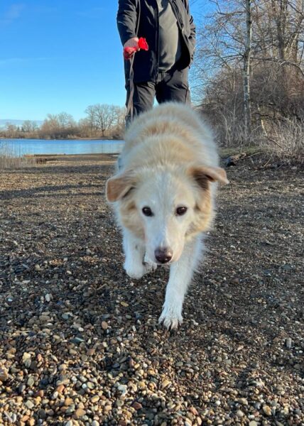 Sugar´s Interessenten holten sie zu einem schönen Spaziergang ab. Schon im Hof begrüßte sie die beiden fröhlich und lief gut gelaunt mit. Alle drei genossen den langen Spaziergang zum Förchensee sehr, Sugar lief super an der Leine und schnüffelte munter am Wegesrand. Andere Fahrzeuge oder Spaziergänger waren ihr egal, gut gelaunt machte sie gemütliche Kuschelpausen mit ihren Interessenten. 🙂 Wieder im TierHeim, blieben Adrian und Simone noch lange bei ihr im Zimmer zum Kuscheln und Bürsten. 🙂