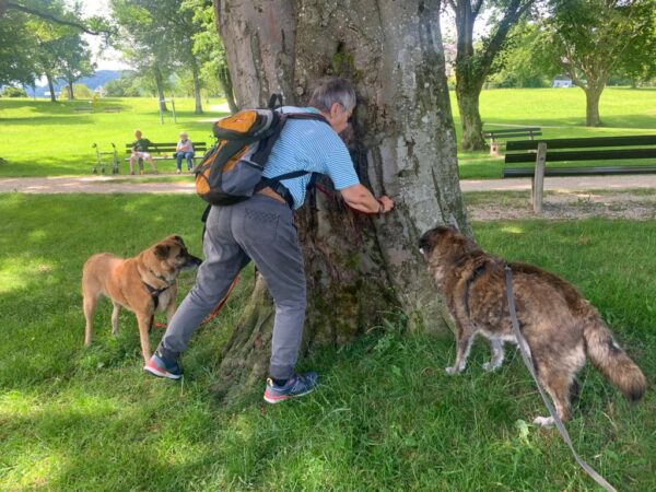Mit Latjak und Valentina fuhr Doris danach auch zum Hundplatz. Aber auch den beiden war es auf dem Platz in der Sonne viel zu warm. Doris ging deshalb mit ihnen erst den Bachweg entlang, wo beide ein erfrischendes Bad nahmen, danach gingen sie auf dem kühlen Waldweg entspannt zurück zum Auto. 🙂