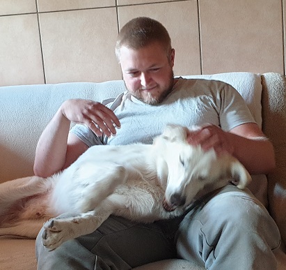 Mit Juri kam Ben gleich morgens zu mir in den großen Garten, wo Juri viel herumschnüffelte, Leckerchen suchte und sich im Schatten liegend über Streicheleinheiten von mir freute. 🙂