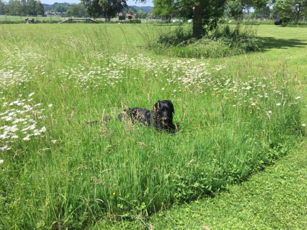 Mit Aslan sind Michi und ich am Morgen auf dem Hundeplatz, wo er wegen der warmen Temperaturen nur von einem Schattenplatz zum nächsten gelaufen ist. Trotzdem hat er es genossen, sich umzuschauen und herumlaufen zu können. 🙂