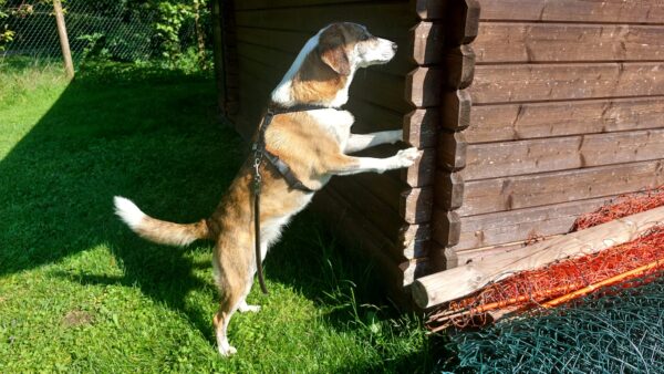 Conny fuhr auch mit Lena auf den Hundeplatz. Lena war die meiste Zeit sehr gemütlich unterwegs und suchte oft Schattenplätze auf, wo sie sich über Streicheleinheiten freute. Für eine von Conny ausgelegte Leckerchensuche stand sie aber gerne auf und sammelte sie ruck-zuck ein. 🙂