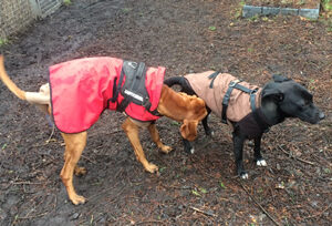 Latjak und Valentina haben es sich auf dem Dach der Hundehütte bequem gemacht, da die Ausläufe sehr matschig sind, denn leider sind die Arbeiter, die die Ausläufe 1 und 2 sanieren wollten, noch immer nicht gekommen und vertrösten uns von Woche zu Woche. 🙁