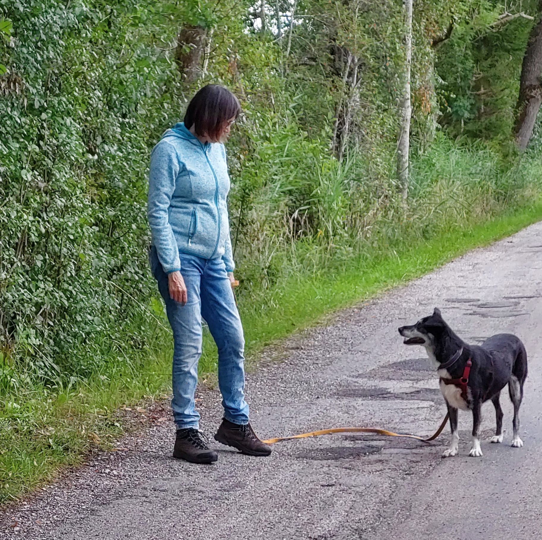 Mit Resi und Franzi gingen Karin und Conny am Abend vor bis zum Maler Haas. Die Mädels waren sehr entspannt und freuten sich über mehrere Leckerliesuchen. Vorbeifahrende Autos und Fahrräder interessierten sie überhaupt nicht. Glücklich kamen sie von ihrem Ausflug zurück. 🙂