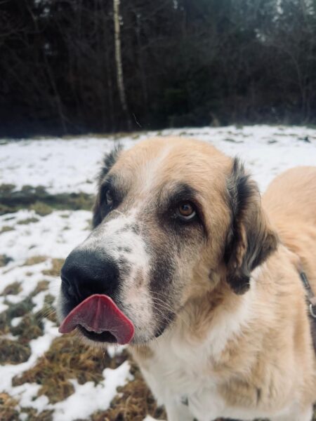 Weil es Aslan wieder besser ging, fuhren Chris und Sissy mit ihm zur großen Wiese. Er kam gerne mit, freute sich über ein paar Leckerlies, die er im Restschnee auf der Wiese einsammelte und wollte sogar bis zum kleinen See laufen. Dort machten die drei eine lange Kuschelpause, saßen auf den großen trockenen Grasbüscheln und genossen einfach die gemeinsame Zeit draußen. ❤️