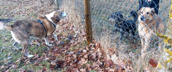 Mit Lena fuhr Conny zum Hundeplatz, wo die beiden recht flott unterwegs waren, um nicht zu frieren. Für Lena gab es viele Spuren von der Hundegruppe zu erschnüffeln, die zuvor da war. Am Zaun rannte sie mit anderen Hunden um die Wette und dann hatten sie eine nette Begegnung mit Sissi, Paulchen und deren Halterin, die sich bei Conny herzlich für unser großartiges TierHeim-Engagement bedankte. 🐕💖 Ein schöner Ausflug bei Regen, Graupel und Sonne. 🙂