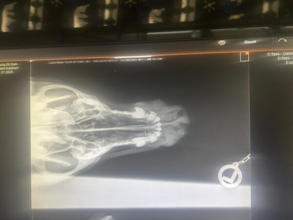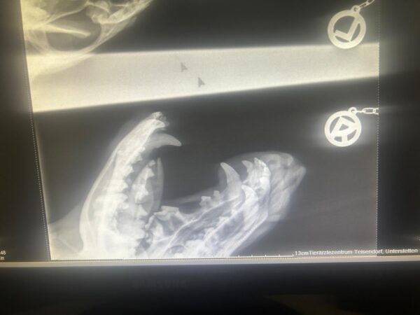 Mit Sam waren Chris und Sissy in der Klinik, um abzuklären, ob ihm Zahnschmerzen und/oder ein Magen-Darm- Infekt so zugesetzt hatten. In Narkose wurde er geröntgt, seine Zahnwurzeln sind ohne Auffälligkeiten, der massive Zahnstein wurde im Anschluß entfernt. Im Bauchraum waren ebenfalls die Organe unauffällig, bis auf den Dünndarm, dessen Schleimhaut verdickt ist, ein Hinweis auf einen Infekt. Der Doc nahm außerdem noch Blut ab, die Ergebnisse werden wir in ein paar Tagen bekommen und natürlich wurden auch seine Analdrüsen angeschaut und ausgedrückt und die Krallen gekürzt. Nachdem Sam wieder wach war, machten sich Chris und Sissy mit ihm auf den Rückweg. Wieder im TierHeim war er erstaunlich fit, wackelte kein bisschen und lief in sein Zimmer, um sich noch ein wenig auszuruhen. Später im Hof sauste er gut gelaunt herum und auch das Futter schmeckte ihm wieder gut. 🙂 Morgen soll er nochmals ein Antibiotikum und Schmerzmittel gespritzt bekommen, ansonsten ist er wohl eindeutig wieder auf dem Weg der Besserung, Gott sei Dank! DANKE an unsere Ehrenamtlichen Chris und Sissy, die die Klinikfahrt übernommen haben! 🙂