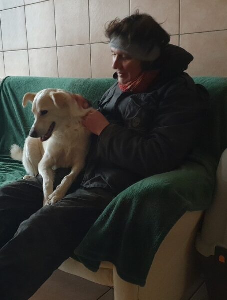 Mit Santana ging Chris danach auch auf die große Wiese und weiter zum See. Santana hüpfte fröhlich herum, schnüffelte am Waldrand und suchte eifrig nach den von Chris ausgelegten Leckerchen. Zurück im Zimmer kuschelten die beiden noch eine Weile. 🙂