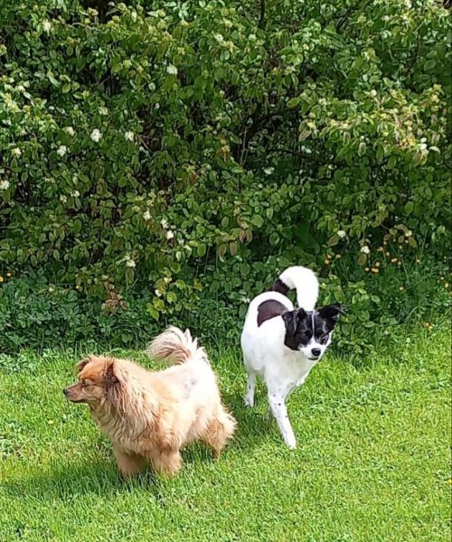 Spazieren waren Lucky, Balto, Rosalie, Percy, Nicky, Laluna, Flora, Fio, Grisu, Mato, Alaska, Lena, Sam, Resi und Franzi. Sie und die anderen Hunde verbrachten auch viel Zeit im Hof und – wenn nicht gerade ein Regenschauer nierderging – in den Ausläufen.