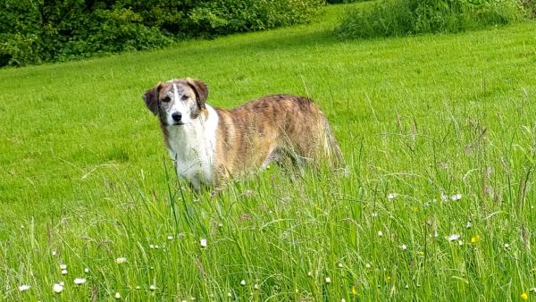 Nachmittags machte der Regen Pause und es kam sogar mal die Sonne durch. Flora, Fio und Grisu hatten mit Marc viel Spaß auf dem Hundeplatz. Es waren sehr wenig Spaziergänger unterwegs, weshalb auch Grisu gut zur Ruhe kam. Alle drei liefen gerne mit Marc mit, auch Fio traute sich zu ihm. Sie verbrachten die Zeit mit Leckerliesuchen und Gerätearbeit – schaut mal, wie sie strahlen: 🙂
