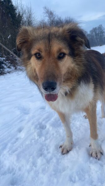Danach fuhr Conny mit Suri vor zum Medical Park. Suri genoss den Spaziergang im Schnee, sie wälzte sich unentwegt und sprang dann wieder fröhlich weiter. 🙂