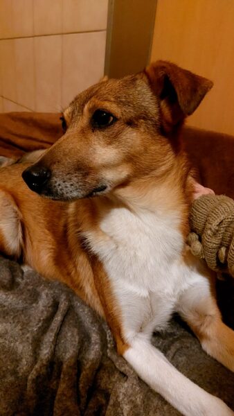 Jutta, Dirk`s Frau, war derweil zum Vertrauensaufbau bei Rosalie und Diego. Beide sausten gleich zu ihr hin, streicheln lassen wollten sie sich aber (noch) nicht. Als Jutta ihnen etwas vorsang, legten sie sich entspannt neben sie und schliefen ein. 🙂