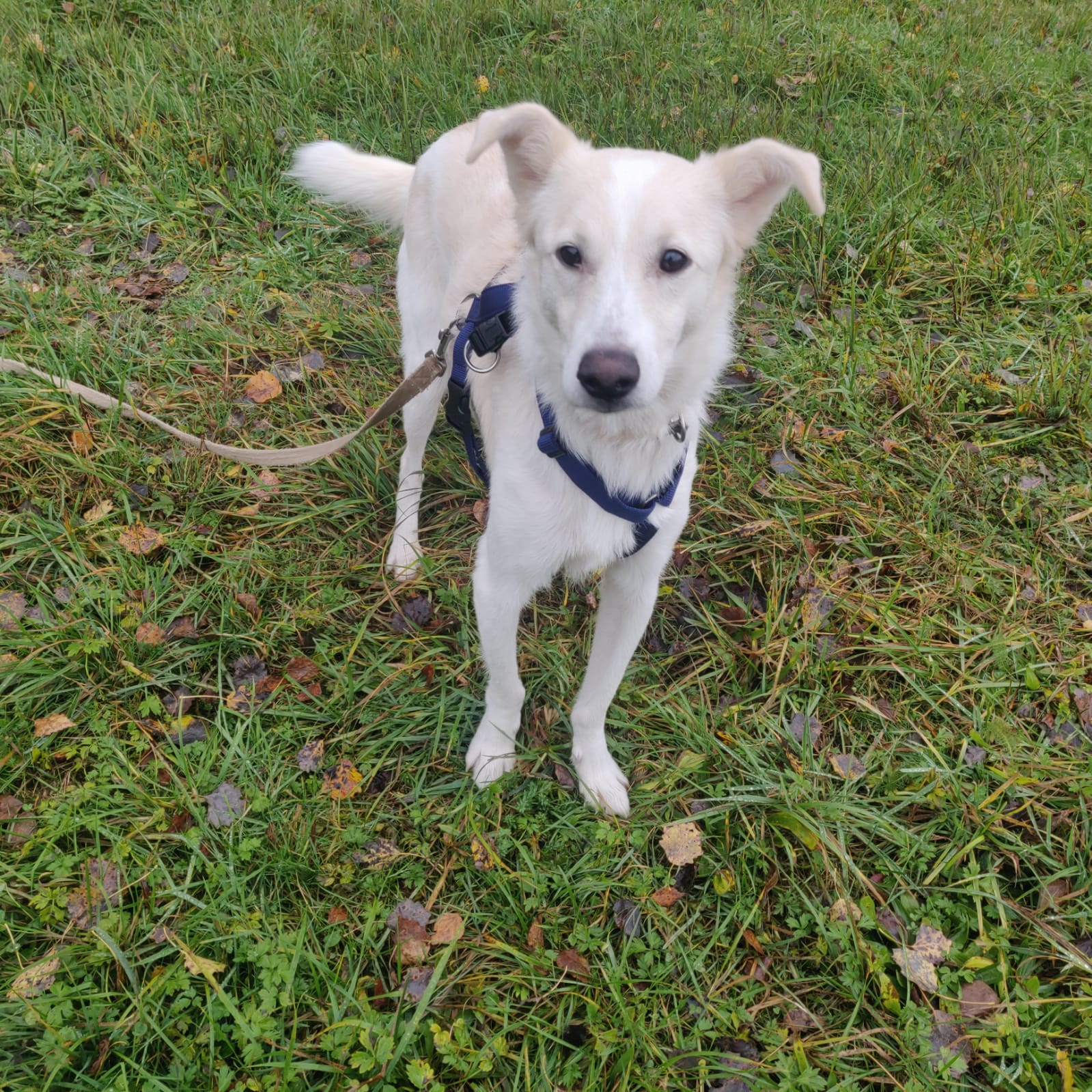 Ben ging mit Santana auf die große Wiese, wo er viel herumschnüffelte und entspannt in die Gegend schaute. Wasser scheint er nicht so zu mögen, er wich allen Pfützen aus. 🙂 Einem Fahradfahrer wollte er hinterherspringen, was Ben natürlich verhinderte.