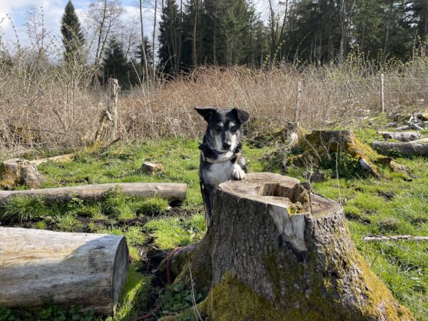 Dagmar und Fred gingen mit Lucky und Balto zu den Weihern bei der Raststätte, die sie komplett umrundeten. Besonders die Baumstämme fanden Lucky und Balto wieder sehr interessant, denn dort legten ihnen Dagmar und Fred Leckerchen aus , die sie ratz-fatz absammelten. 🙂