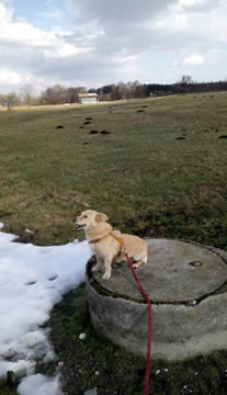 Donna durfte nachmittags nochmal eine Runde mit Olivia und Sebi drehen. Auf einer großen Wiese tobte sie sich erst richtig aus und dann wurde mit viel Eifer nach Maulwürfen und Wühlmäusen gebuddelt. Während des Spaziergangs sind diese niedlichen Bilder entstanden:
