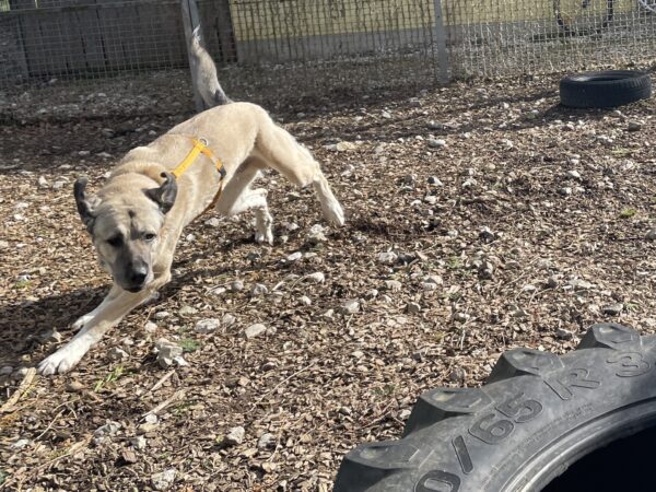 Juri freute sich schon sehr, als er Jutta, Matthias, Frieda und Wilma zum Tor hereinkommen sah! Er propellerte mit der Rute und sauste aufgeregt am Zaun auf und ab. Zuerst kam Matthias zu ihm rein, dann auch Frieda, was Juri total klasse fand. Er flitze herum und zeigte jede Menge Spielaufforderungen, auf die Frieda auch teilweise einging. 🙂 Nach 20 Minuten stand Juri vor dem Ausgang und wollte zurück in sein Zimmer.