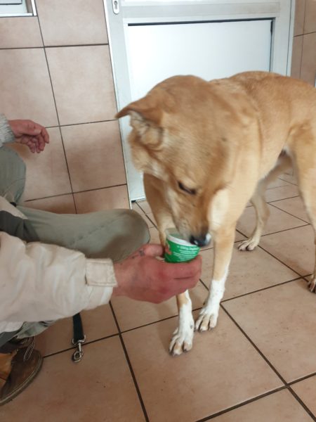 Wieder zurück im TierHeim verteilten Robert und Alexandra Joghurt an alle Hunde, die sich sehr darüber freuten. Hier seht Ihr eine kleine Auswahl an Fotos:
