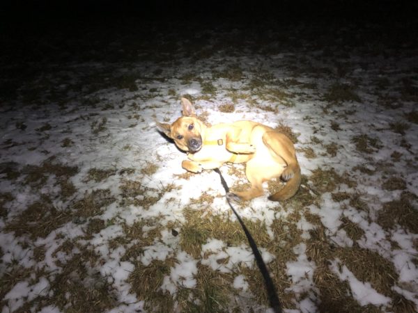 Momo und Aika freuten sich über einen Abendspaziergang mit Michi. Auch sie waren auf der großen Wiese unterwegs und erkundeten die Spuren des Tages. Genüsslich wälzten sie sich im Schnee, untersuchten Mäuselöcher und liefen brav an lockerer Leine. 🙂