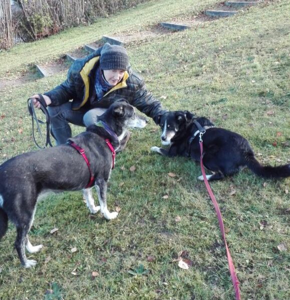 Gleich in der Früh freuten sich Rosalie und Diego über einen Morgenspaziergang mit Elke. Auf der großen Wiese flitzten die beiden lachend durch das Gras, stöberten im Gebüsch am Waldrand und kamen fröhlich zu Elke gerannt, wenn sie nach ihnen rief. Entspannt umrundeten sie die Wiese und gingen dann zufrieden zurück ins TierHeim. Als Alex mittags zu Rosalie und Diego in den Auslauf ging, begrüßte Diego sie mit freundlichen Nasenstubsern und Alex durfte ihm den Rücken streicheln – ein schöner Vertrauensbeweis. 🙂