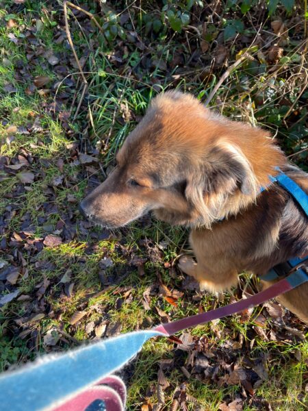 Kaya freute sich über einen langen Spaziergang mit Uschi. Sie begrüßte sie freudig im Hof und hüpfte wie ein Flummi um sie herum, dann gingen sie los zum Förchensee. Anfangs testete Kaya, ob Uschi Leckerlies dabei hatte, aber nachdem sie keine bekam, lief sie munter schnüffelnd den Weg entlang, wälzte sich immer wieder im Gras und freute sich über Kuschelpausen. 🙂