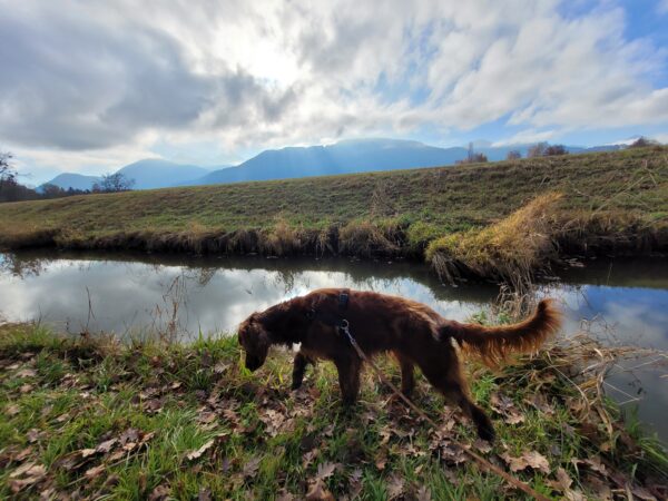 Yuno war gerade im Auslauf, als Anja kam und als er sie sah, begann er freudig zu propellern. 🙂 Sie fuhr mit ihm zum Maler Haas, von wo aus sie einen schönen Spaziergang um den Förchensee machten. Die beiden genossen die gemeinsame Zeit sehr, Yuno lief leicht „wie eine Feder“ mit Anja mit und erkundete neugierig die Umgebung. Beide kamen mit lachenden Gesichtern zurück. Yuno bekam sein Mittagessen und kuschelte sich nach dem Fressen zufrieden in sein Bett. 🙂