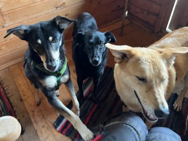 Em fuhr mit Percy, Nicky und Laluna zum Hundeplatz. Percy scheute sich heute davor, ins TierHeimauto zu springen, zum großen Erstaunen von Em und Alex. Em nahm ihn nach den vergeblichen Versuchen an die Leine und sauste mit ihm zum Auto, Laluna begleitete die beiden und schon waren sie drin und konnten losfahren. Oben angekommen hatten sie viel Spaß, Percy sauste mit seinen Mädels munter über das Gelände, als wäre nichts gewesen. Auf dem Weg waren keine Spaziergänger und so stromerten die drei tiefenentspannt herum, suchten begeistert Leckerlies und genossen in der Hütte ihre Kuschelpause. 🙂
