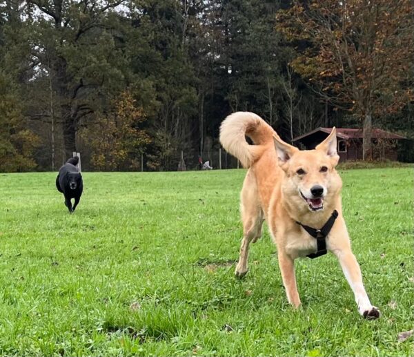 Sam war heute mit Sissy unterwegs. Er hatte große Freude daran, ein paar Löcher zu buddeln und er war sehr neugierig. Es war recht viel los während des Spaziergangs, trotzdem war Sam super entspannt, selbst beim Anblick von Artgenossen blieb er ruhig, hatte aber auch kein großes Interesse daran, sie näher kennenzulernen. Spuren schnüffeln fand er viel spannender. 🙂