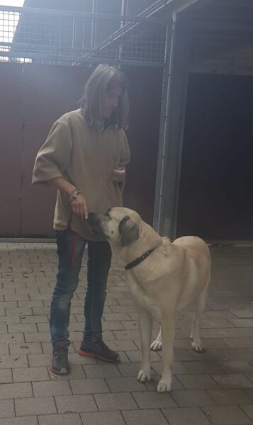 Mit Bonnie machte Conny einen langen Abendspaziergang mit vielen Hundebegegnungen. Bonnie folgte diversen Spuren und legte dabei ein Tempo vor, dass Conny gerade so mithalten konnte. 🙂 Zurück im TierHeim haben die beiden ausgiebig gespielt und gekuschelt. Im Hof erzählte Conny gerade von dem Spaziergang, da sauste Bonnie immer wieder voraus in Richtung Zimmer und wieder zurück, um Conny abzuholen. Es war, als wollte sie sagen: „Kommst Du jetzt endlich, ich möchte ins Zimmer zum Kuscheln!“ 🙂 🙂 Echt süß!