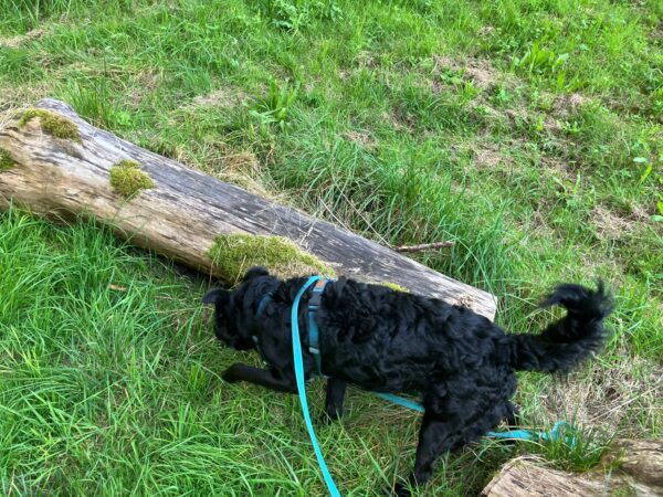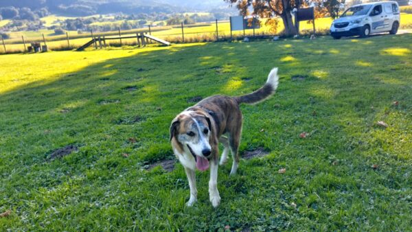 Anschließend fuhr Conny mit Sam zum Hundeplatz, der super gut gelaunt seine Runden lief und dabei vor Freude strahlte. Sooo schön! Er kletterte auf den Geräten herum, suchte nach ausgelegten Leckerchen und genoss Streicheleinheiten von Conny. 🙂